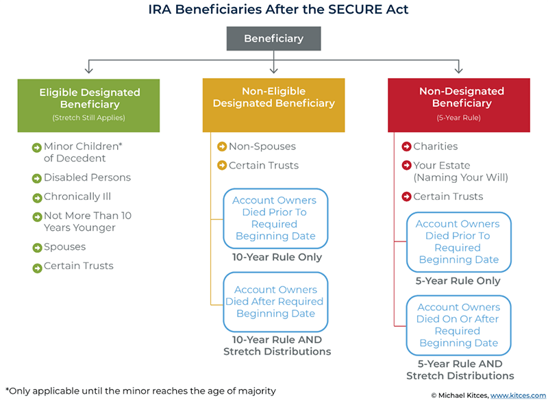 Below is a diagram that illustrates the RMD options available based on how the SECURE Act classifies a beneficiary. It is important to note that we are unable to provide specific tax advice and encourage your client to discuss these options with a tax professional.