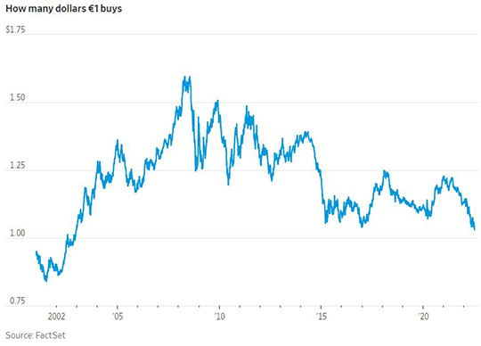 While the outlook for the US economy is uncertain, it may be darker for Europe. This is reflected in the strong US dollar, which has appreciated this year due to the underlying strength of the US economy and concerns in international markets. The ICE US Dollar Index, which measures the US dollar against a broad basket of currencies, has appreciated by 11% year to date. The US Federal Reserve moved more quickly to reign in high inflation than the European Central Bank. The ECB has moved slower as it faces a weaker regional economy that did not benefit from fiscal stimulus to the extent that the US did. The acute energy crisis facing Europe due to threat of being cut off from Russia could worsen from an inflationary shock into a growth shock if energy prices strangle manufacturing. Germany may be facing natural gas rationing this winter, and already recorded its first trade deficit since 1991 as manufacturing exports slow. The euro is rapidly approaching parity with the US dollar and many investors expect that it may fall even lower than that. The weak euro will depreciate the value of foreign earnings by US multinationals, which account for 14% of revenue in the S&P 500. However, it is arguably worse for euro-denominated assets. The Stoxx Europe 600 Index has fallen 15% this year in euro terms, less than the YTD fall in the S&P 500. However, after accounting for the deprecation of the euro, it has fallen farther than the S&P 500 in dollar terms. The weak euro also will make inflation worse, as it will make imports such as energy more expensive, as they are commonly priced in dollars.