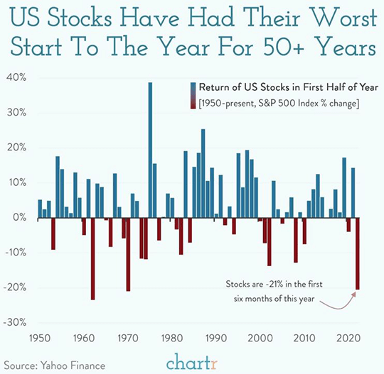 The first half of 2022 will go down as a historically difficult period for US equities. The S&P 500 fell 20.6% to start the year, making this the worst first half of a year for that index in 52 years. This is of course a completely arbitrary time period however, with no predictive power for what will occur during the second half of the year. In fact, historical data shows that of the 23 times that US equities fell in the first half of the year, they rose during the second half of the year 12 times, or roughly 50% of the time. The third quarter of the year started off with a reprieve for equity investors. The S&P 500 rose 1.9% for the week while the Dow Jones Industrial Average gained 0.8%. The Nasdaq Composite gained 4.6% last week as investors sought out discounted shares among technology companies. US short selling rose by $20 billion in June, a significant decrease compared to the $61 billion in equities shorted in May. The smaller increase in short selling last month suggests relatively fewer investors now expect equity shares to fall further from their current level.