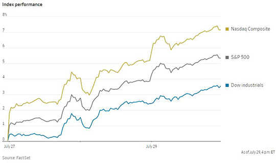 US stocks rose for three straight days last week after the latest meeting by the US Federal Reserve. The S&P 500 ended July up 8.9%, clawing back a significant amount of its losses from earlier this year. Last week was an important one for corporate earnings, with many major large-cap companies reporting results for the second quarter. The selloff in stocks this year was already pricing in a significant slowdown and many major companies have reported earnings that were not as bad as feared. Fully 75% of companies that have reported earnings so far this quarter have beat estimates. Walmart and Procter & Gamble stood out as indicative of the cost pressures facing consumer goods and fell as a result. However, large technology companies including Amazon and Apple reported surprisingly strong revenues, powering the Nasdaq Composite higher. Energy producers including Chevron and Exxon Mobil also posted strong earnings, which resulted in their stock prices being bid higher as well. The yield on the 10-year US Treasury note ended the week down at 2.634%. It is important to note that the yield curve between the 2-year and 10-year Treasury notes has stayed inverted for some time in July. An inverted yield curve has historically been a reliable predictor of future recessions. Some investors have expressed skepticism over whether stocks can hold onto their gains from this relief rally.