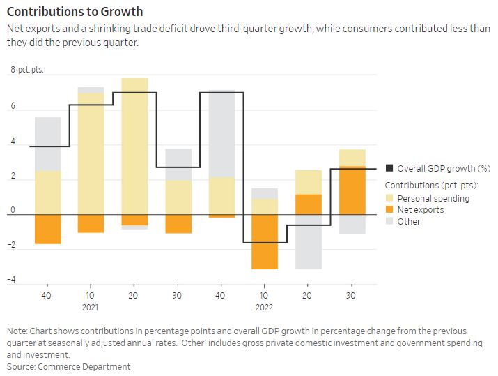 Last week also saw a flurry of updated macroeconomic data on the trajectory of the US economy. The US Commerce Department reported that gross domestic product (GDP) grew at an annualized rate of 2.6% in the third quarter, powered higher by strong net exports. Finals sales to private domestic purchasers, which measures combined consumer and business demand, was barely positive at 0.1%. That is a continued deceleration from an increase of 0.5% in Q2 and 2.1% in Q1. Consumer spending rose by a seasonally adjusted 0.6% in September but was accompanied by a lower savings rate and higher credit-card balances, indicating that consumer strength may be approaching its limits. Meanwhile, the core personal consumption expenditures index, which is the US Federal Reserve’s preferred gauge of inflation, rose 5.1% relative to a year ago. That marks an acceleration relative to the prior month. These data points make it likely that the Fed will raise interest rates by 75 basis points yet again this week. While it is still unknown if the Fed will be able to reign in inflation without triggering a recession, bond markets flashed an important recession indicator for the first time last week, as the spread on yields between the three-month US Treasury bill and the 10-year US Treasury note finally inverted. An inversion in that yield spread has preceded every US recession since 1950, except for one false alarm in 1967.