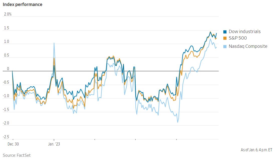 The December jobs report from the US Labor Department showed that higher interest rates may be finally starting to cool the labor market. The US economy added 223,000 new jobs last month, and while still higher than the pre-pandemic monthly average, that was the slowest rate of job creation in two years. Average hourly earnings rose 4.6% in December from a year ago, the slowest annual rate of increase in more than a year. The unemployment rate ticked down to 3.5% as the labor force participation rate increased slightly. Taken as a whole, the report showed a welcome early indication that the labor market may be starting to come off the boil, though it remains healthy. That is good news from the perspective of the Federal Reserve as it tries to rein in inflation while engineering a soft landing for the economy. US markets rallied strongly on Friday in reaction to the news, with the Dow Jones Industrial Average gaining 2.2%, the S&P 500 rising 2.4%, and the Nasdaq Composite surging by 2.7%. Government bonds rallied as well, with the yield on the 10-year US Treasury note dropping to 3.57% from 3.72% the day prior.