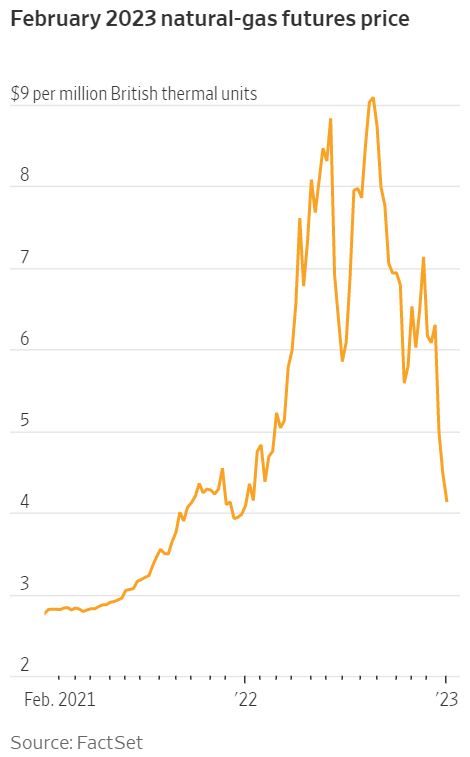 So far, this winter is shaping up to be unseasonably warm in the Northern Hemisphere, particularly in Europe. In fact, on New Year’s Day at least seven European countries set new records for the warmest January weather ever recorded. Though the implications of this extreme heat in Europe are decidedly mixed overall, they have had the impact of decreasing demand for natural gas for heating. This is critical for the Eurozone economy as it wrestles with an inflation surge stemming from being cut off from Russian supplies of natural gas. The price for US natural gas futures for February delivery have now fallen 57% from the highs reached last summer. Natural gas prices now stand roughly at the same level as before Russia’s invasion of Ukraine. Recent European inflation readings for December came in below expectations for both France and Germany, largely due to lower energy prices. Eurozone government bonds rallied across several major economies on optimism that easing inflation may allow the European Central Bank to eventually slow its aggressive pace of interest rate hikes.