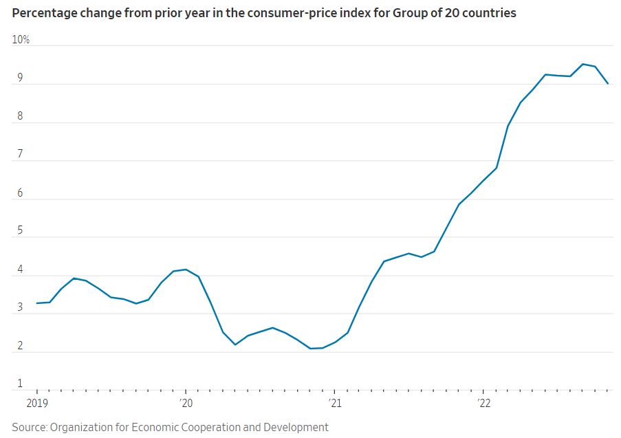 The World Bank last week released updated estimates for the global economy that were a sharp drop from prior projections. The World Bank now expects the global economy to grow by just 1.7% this year, in contrast to its prior estimate of 3% back in June 2022. The US economy is expected to grow 0.5% for the full year, narrowly avoiding recession. Though Europe looks set to avoid the worst-case scenario of a full energy crisis, the World Bank still expects no economic growth for the Eurozone in 2023. China is expected to bounce back later this year following its chaotic exit from zero-COVID with GDP growth of 4.3%. Meanwhile emerging markets are estimated to grow in aggregate at a rate of 3.4%. Meanwhile, the Organization for Economic Cooperation and Development (OECD) provided an unexpected source of good news last week. The OECD calculates inflation for the G-20 group of countries, which account for 80% of global economic output. In November, consumer prices for the G-20 rose by 9%. That represents the first slowdown in inflation since August 2021. That is a welcome first step in the right direction for global central banks’ fight with inflation.