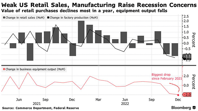 Updated data released last week shows that higher interest rates are continuing to have the expected effect on both inflation and economic activity. On a positive note, the US Producer Price Index (PPI) fell 0.5% in month-on-month terms, significantly more than the surveyed consensus for a 0.1% decline. This was attributed largely to a significant decrease in energy and food prices. Core PPI, which excludes food and energy, rose 0.1% in December compared to the month prior. Compared to a year ago, PPI rose by 6.2% in December, a slowdown from November’s 7.3% rise. Core PPI rose 4.6% in December compared to a year ago, also a slowing from November. However, continued progress on the inflation front came at the cost of slowing economic activity. December US retail sales fell by 1.1% compared to the month prior, marking the second consecutive month of declining consumer spending. That suggests that even despite the holiday shopping season, American consumers are reaching the limits of their spending power. Manufacturing activity also decreased, with a 2% slump in the output of business equipment. That is the second consecutive month of declining business investment. This all suggests that the US Federal Reserve is increasingly likely to raise interest rates by a smaller margin at its next meeting on February 1st.