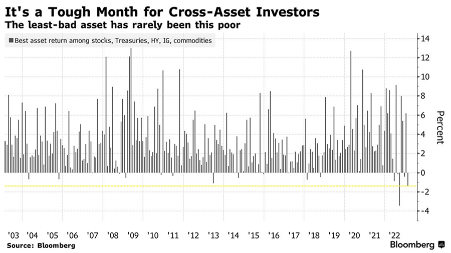 Investors experienced a reversal of January's rally as bets on cooling inflation and lower rates proved misplaced in February. From stocks to fixed income and commodities, almost every asset class saw declines. The “best” return among major US assets was a decline of 1.4% through Monday from high-yield bonds. That was followed by a drop of roughly 2.5% each in Treasuries and the S&P 500 Index, a 3.2% slide in investment-grade bonds and a 5% slump in commodities. The pervasiveness of losses was notable, with only one other month in the past four decades seeing the best return among asset classes come in worse than this one. The post-pandemic market has been characterized by all-or-nothing stakes, with almost every asset linked to the trajectory of economic news and central bank policy. The stronger-than-expected economic data forced traders of all stripes to back away from expectations that major central banks around the globe are close to finished with monetary tightening. The shift in policy expectations hit the fixed income market, with two-year Treasury yields jumping to the highest level since 2007. The yield curve between two-year and 10-year Treasuries inverted to levels not seen in four decades. While stronger data, particularly in the US labor market, eased concern about an imminent recession, that risk still lingers. The S&P 500 fell for three straight weeks, with February’s decline wiping out almost half of the previous month’s advance. Even commodities, often touted as a hedge for inflation, couldn’t escape the pull from higher rates. As earnings season ends, investors will be more driven by economic data in the coming weeks.