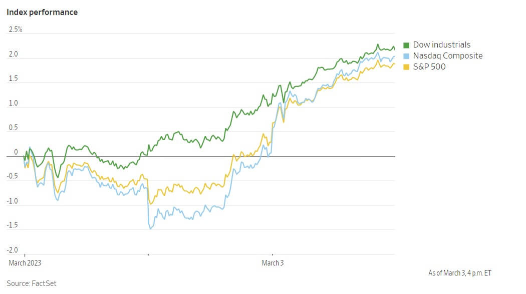 U.S. stocks rebounded last Friday after data showed strong activity in the U.S. services sector, outweighing concerns about inflation and global monetary policy tightening. The S&P 500 rose 0.7%, the Nasdaq Composite added 1.6%, and the Dow Jones Industrial Average gained 1%. Stocks were fluctuating all week due to strong global economic data boosting inflation expectations, leading central banks to consider raising interest rates. Two readouts on the U.S. services sector released on Friday showed relatively robust spending in February. The S&P Global U.S. Services PMI index rose to 50.6, the highest reading since June, and the Institute for Supply Management’s services activity index exceeded the consensus forecast of economists. Despite this positive economic data, the yield on the benchmark 10-year Treasury note continued to rise, reflecting bond traders’ growing expectations that the U.S. Federal Reserve will maintain a hawkish bent on interest rates to tame inflation.