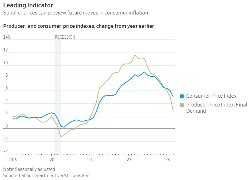 U.S. supplier prices fell by 0.5% in March compared to the prior month, the largest monthly decrease since April 2020, indicating a moderation in inflation. From a year earlier, supplier prices rose by 2.7% in March, a significant slowdown from highs reached last year. Cooling supplier prices can signal a future fading of consumer inflation (CPI). The decline in goods prices was the main factor in the cooling of supplier prices in March. Meanwhile, initial jobless claims increased by 11,000 to a seasonally adjusted 239,000 last week, but the labor market remains solid despite stresses in the banking sector. American retail spending decreased for the second consecutive month in March, with consumers cutting back on purchases of items including vehicles, furniture and appliances due to rising interest rates. The Commerce Department has stated that overall purchases at stores, restaurants and online declined a seasonally adjusted 1% in March from the prior month. The decline in retail sales could suggest that higher interest rates are working to slow down the economy, which Federal Reserve officials have intended. Manufacturing output, which is also sensitive to interest rates, declined 0.5% in March from the prior month and is down from a year earlier, the Fed said in a separate report Friday.