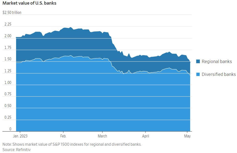 First Republic Bank, a California lender catering to wealthy clients, became the second-largest bank failure in US history last week with $229 billion of assets as of April 13. The bank was seized by the Federal Deposit Insurance Corp. on Monday after failing to recover from customer withdrawals and declining asset prices. First Republic had become vulnerable after the collapse of Silicon Valley Bank in March, which led to many depositors fleeing. The bank's deposit base collapsed, and it turned to expensive short-term borrowing to plug the gap. Loans it had made when interest rates were low had slumped in value, leading to worries about its solvency. JP Morgan Chase & Co. acquired First Republic Bank last week in a government-led deal after private rescue efforts failed and is taking over First Republic's assets, including $173 billion of loans, $30 billion of securities and $92 billion in deposits. The bank failure is the third to occur in the past several weeks, following the collapses of Silicon Valley Bank and Signature Bank. Though both the Fed and JPMorgan attempted to provide reassurance of the stability of the banking system following the successful sale, several other regional banks including PacWest and Western Alliance came under severe selling pressure from investors last Wednesday and Thursday, with PacWest’s share price falling to its lowest on record. However, the embattled banks rebounded strongly on Friday, recovering a great deal of the prior days’ losses as the volatility continues.