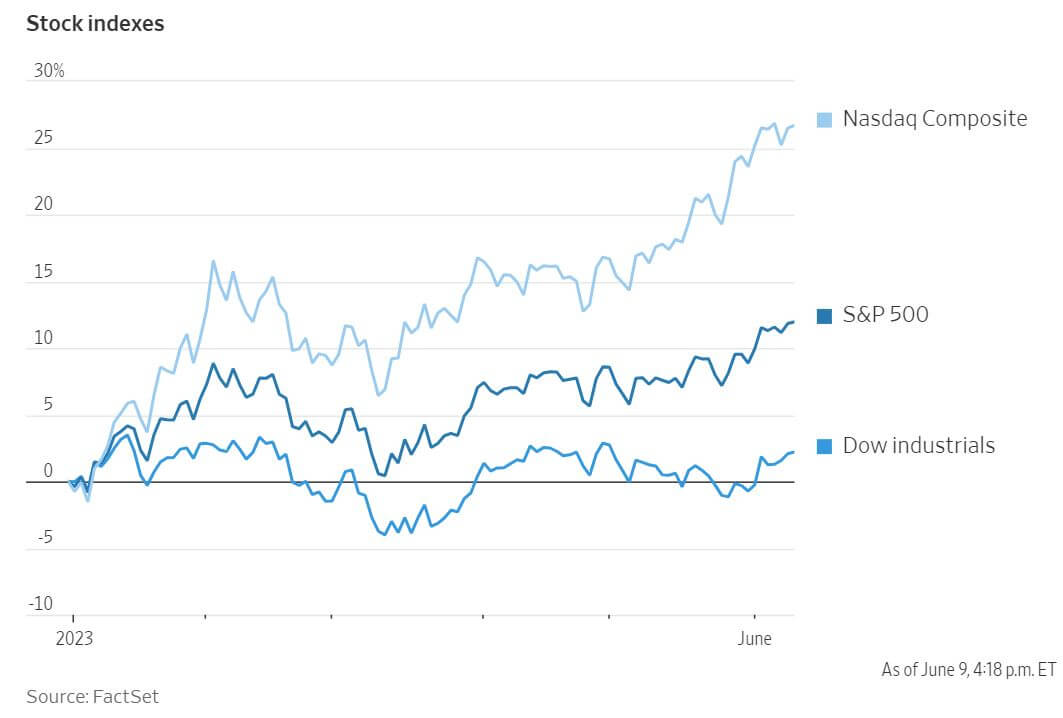 The S&P 500 continued its upward trend last week fueled by the climbing technology sector and expectations that the Federal Reserve is approaching the end of its interest rate hikes. With the rise in tech stocks, the S&P 500 has now achieved a 20% gain from its October low, commonly considered a marker of a bull market. The recent rally in stocks has been supported by the resolution of the debt-ceiling fight and signals from the Federal Reserve about maintaining interest rates at their June meeting. Furthermore, the growing interest in artificial intelligence has propelled the shares of chip makers like Nvidia. However, analysts have expressed caution, suggesting that the rally could stall ahead of interest rate decisions from both the Federal Reserve and the European Central Bank scheduled for the following week. Potential obstacles remain for tech stocks, including a resilient labor market and persistent high inflation, which may lead to continued interest rate hikes. Tech stocks are particularly vulnerable to higher rates due to their valuation being based on expectations of significant profits.