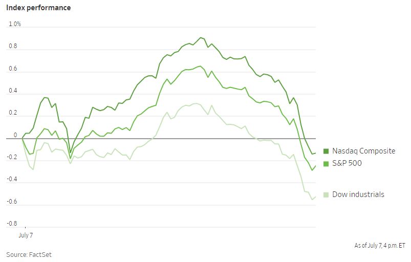 In thin afternoon trading Friday, US stocks reduced their gains, while Treasuries and the dollar experienced fluctuations following the release of June hiring data. The S&P 500 traded lower than its session highs and the dollar was on track for its biggest one-day drop since February 1. Notable stock movements included Levi Strauss & Co. falling due to a lowered outlook, and Rivian Automotive Inc., an electric-vehicle manufacturer, climbing for the eighth consecutive session. Stock markets have been declining in July, driven by hawkishness from central banks which has dampened hopes of a smooth global economic recovery. Bank of America Corp. strategists warned that investors who heavily invested in the technology sector risk being caught off guard by the selloff caused by rate hikes. Oil prices recorded a second consecutive weekly gain as evidence showed that the decision by OPEC+ leaders to reduce oil supplies was having an impact on physical markets. West Texas Intermediate (WTI) settled near $74, reaching its highest level in over a month, supported by positive market sentiment. This marked the first back-to-back weekly increase in crude prices since May, with near-term time spreads exhibiting a bullish pricing pattern by flipping into a narrow backward-dated structure. Although crude prices are still down around 10% for the year, factors such as tighter monetary policy, China's slow economic recovery and resilient Russian exports have put pressure on oil futures. Despite a broader decline in other risk assets, oil prices rose this week due to robust US jobs data, which reinforced expectations of the Federal Reserve continuing to raise interest rates.