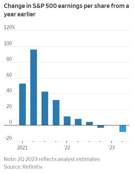 As the second-quarter results are being reported, it appears that this earnings season will be notably challenging, with estimates indicating a potential 8.1% decline in earnings per share for S&P 500 companies compared to the previous year. Although actual outcomes may not be as severe due to overly pessimistic estimates, a decline is still expected, with S&P 500 net income estimated to have fallen by 11.4%. Revenues have also experienced a decline, albeit less substantial at 0.9%, signaling a potential contraction in profit margins. The decline in revenues may be partially attributed to the energy sector, where fuel prices have significantly decreased. However, when excluding energy companies, S&P 500 revenues are expected to show only a modest 2.8% increase. A broader issue lies in the stock market's focus on goods-producing companies, while consumers redirect their spending towards services. Furthermore, goods inflation, apart from energy-related items, has decreased significantly, with consumer spending on goods rising by approximately 4%, while spending on services is projected to increase by around 8%. To address flagging sales, companies often seek to reduce costs, especially labor costs. While some have attempted layoffs, the tight labor market presents challenges, as many workers are now in high demand. This competition for labor with service providers has led to upward pressure on wages.