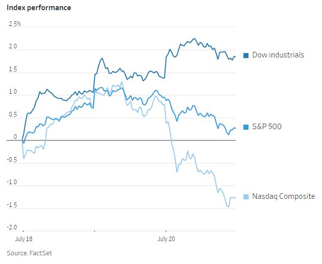 The Dow Jones Industrial Average extended its winning streak for the ninth consecutive session, displaying a notable 0.5% increase on Friday, the longest such streak since September 2017. Conversely, the S&P 500 dropped 0.7% and the tech-heavy Nasdaq Composite saw a more substantial pullback of 2.1%. The discrepancy in performance was influenced by a post-earnings selloff in Tesla shares which had a significant impact on the S&P 500 and Nasdaq's performance due to their market cap-weighted structure. The broader stock-market rally in 2023 has shown signs of diversification recently, but a considerable portion of this year's gains still rely on a small group of major tech companies, including Tesla. Such concentration poses a risk to the major indexes since the overall market could be vulnerable to a pullback if any of these heavyweights stumble. Netflix, another prominent tech-focused stock, slid 8.4% following its report of revenue falling short of its own projections. The PHLX Semiconductor Sector Index dropped by more than 3%, with U.S.-listed shares of Taiwan Semiconductor declining by 5%, while Intel and Nvidia both experienced a 3% decline.