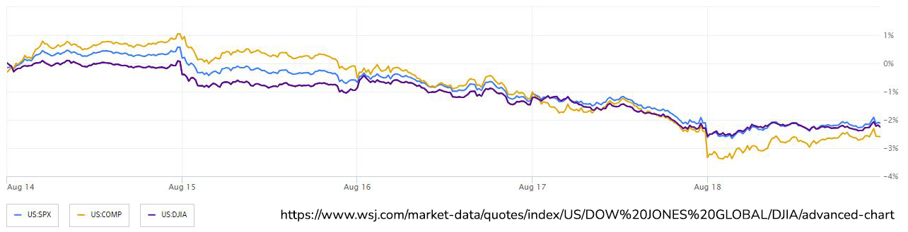 Mega cap tech stocks experienced a third consecutive week of decline, attributed to concerns about rising global interest rates, while bonds rebounded from recent lows. The S&P 500 dropped slightly in Friday trading, with the MSCI global equities benchmark facing its largest weekly loss since March. The Dow Jones Industrial Average remained relatively stable, but the tech-heavy Nasdaq 100 stayed lower. Bitcoin saw an 8% slide, and oil was poised for its first weekly loss since June.