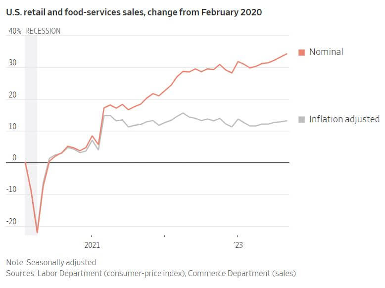 Despite high interest rates, elevated inflation and dwindling pandemic savings, the American consumer is showing remarkable resilience through increased spending. The latest retail-sales report for September revealed a stronger-than-expected 0.7% increase in spending at stores, online retailers and restaurants. This robust consumer behavior contributes to evidence of strong economic growth, which could result in higher interest rates, causing Treasury yields to surge towards yearly highs. The consumer's willingness to spend remains evident in various sectors, including interest-sensitive areas like automotive purchases and more expensive dining experiences. Their broad-based retail spending in September has led some economists to revise their estimates for third-quarter economic growth, with many predicting GDP growth above a 4% annual rate. While consumers increased spending in September, particularly on experiences like dining out, the surge in "revenge travel" is starting to wane, with some budget airlines forced to reduce fares to maintain occupancy. It's important to note that the retail-sales figures don't account for inflation, and a more comprehensive spending report that includes services will be released by the Commerce Department later in the month.