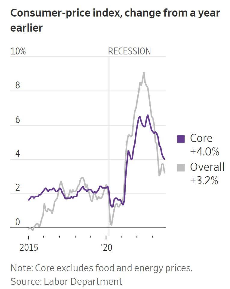 In October, consumer prices showed a slower year-over-year increase of 3.2%. The core inflation rate, excluding volatile food and energy items, also indicated a deceleration, standing at an annual rate of 2.8% for the five months ending in October, down from 5.1% in the first five months of the year. Several factors contributed to this easing, including lower prices for cars and airfares, as well as milder growth in housing and other services. Analysts view core inflation as a better predictor of future trends, and its consistent decrease over the past five months suggests a positive trajectory. Simultaneously, the producer price index experienced an unexpected 0.5% fall compared to the prior month, primarily attributed to a substantial drop in gasoline costs, marking the most significant decrease since April 2020. The Labor Department's Producer Price Index (PPI) indicated a 1.3% increase in overall wholesale prices from a year ago, with the core gauge showing the smallest annual increase since the beginning of 2021.