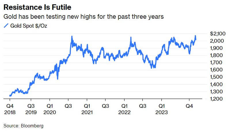 Gold briefly touched a record high of $2,135 per troy ounce last week, before falling back by 6%. The World Gold Council attributes the spike to short-term technical trading rather than fundamental factors like central bank gold buying. Despite central bank purchases, high gold prices have led to a reduction in jewelry demand, and exchange-traded funds have sold over 100 metric tons of physical gold this year. Additionally, mine production has reached a record 1,267 tons, and recycling has increased by 8% to nearly 300 tons. The surge in gold prices coincided with a similar rise in Bitcoin, with both being considered by some as safe-haven assets in times of economic uncertainty. Bitcoin climbed above $40,000 for the first time in 20 months last week and added to those gains to end the week in the range of $44,000. Options traders are increasingly placing bullish bets on Bitcoin reaching $50,000 by January. This surge in optimism is attributed to the anticipation that the Securities and Exchange Commission (SEC) will approve the establishment of exchange-traded funds (ETFs) directly holding Bitcoin, a development expected in January. In contrast, oil prices have seen a sharp decline recently due to a number of factors, including concerns about oversupply, momentum trading, and lower market volumes. Both the US benchmark West Texas Intermediate and the global benchmark Brent experienced significant declines, with Brent's open interest and trend-following algorithms contributing to the acceleration of the fall. Despite a US government report showing a decrease in crude stockpiles, traders appear unconvinced, and the market's weakness is highlighted by Saudi Arabia reducing its official selling prices to Asia. The Organization of Petroleum Exporting Countries (OPEC) and its allies announced deeper output cuts, but skepticism persists among traders regarding the members' commitment to implementing the reductions. West Texas Intermediate crude oil ended the week at $71.20 per barrel.