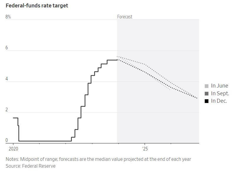 The Federal Reserve, after its two-day meeting, decided to maintain interest rates while signaling that inflation has improved more rapidly than anticipated. This stance opens the door to potential rate cuts in the coming year. The majority of Fed officials projected three interest rate cuts for 2024 in a surprisingly dovish shift from the most recent Fed meeting. Core prices, excluding volatile food and energy items, are anticipated to rise 3.2% this quarter from a year ago, down from the previous estimate of 3.7%. Similarly, the projection for core inflation at the end of next year was adjusted to 2.4%, down from 2.6% in September. The Federal Reserve has maintained its benchmark federal-funds rate at a steady level of 5.25% to 5.5% for three consecutive policy meetings, having most recently raised rates in July. While most officials have been reluctant to openly discuss rate-cut timing, market expectations as reflected in interest-rate futures suggest a likelihood of rate cuts starting in the spring, with a potential reduction of at least 1 percentage point by the end of 2024. The central bank is navigating the delicate balance between moving cautiously to prevent economic decline due to higher interest rates and the risk of easing prematurely, causing inflation to exceed the 2% goal. Recent improvements in the U.S. economic outlook, characterized by slowing inflation and wage growth, provide the Fed with room to lower rates rapidly if needed, even if economic expansion remains stable. The European Central Bank (ECB) also decided to hold its deposit rate at 4% for a second consecutive meeting but revised down its inflation forecasts for the coming year. This adjustment indicates an expectation that inflation will be brought under control soon, prompting an acceleration in the exit from pandemic stimulus programs. The ECB's dovish shift was evident in the removal of a phrase from previous statements suggesting that inflation would remain elevated for an extended period. Meanwhile, the Bank of England adopted a more cautious stance, stating that it is premature to consider lowering its key interest rate. Inflation remains elevated in the UK relative to the US and the Eurozone, with prices in the UK up 4.6% compared to a year ago.