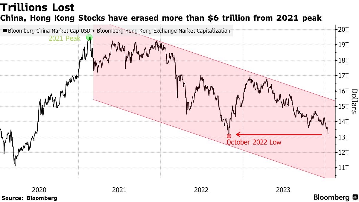 Efforts by Beijing to reassure investors have been met with skepticism so far, and even attractive valuations have failed to provide support, with the MSCI China Index at its cheapest compared to the S&P 500 gauge from a forward earnings estimate perspective. The Hang Seng China Enterprises Index has already lost 11% in 2024, exacerbating a four-year losing streak and signaling a structural shift as both active and passive fund managers turn away from the second-largest stock market globally. Asian fund managers have reduced their allocation to China, with a net 20% underweight, the lowest in over a year, according to a Bank of America survey. The Hang Seng China Enterprises Index experienced a more than 6% plunge in a single week, on track for its worst January performance in eight years. On the mainland, the CSI 300 Index has dropped in nine of the last 10 weeks. The market has seen a staggering $6.3 trillion decline in the market value of Chinese and Hong Kong stocks since the peak reached in 2021, highlighting the difficulty for Beijing in restoring investor confidence.