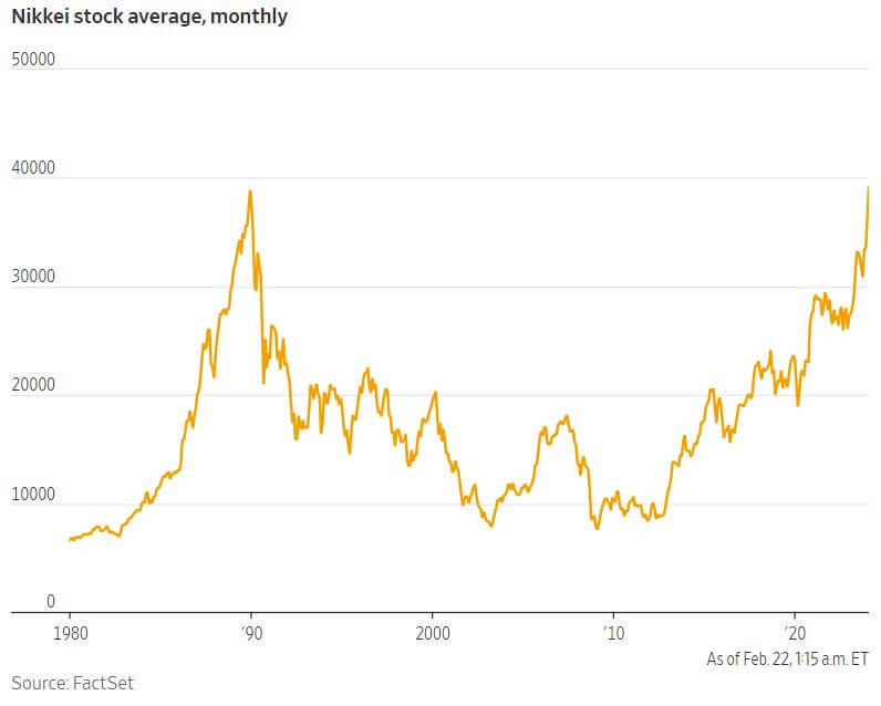 The recent attainment of a record high in Japan's benchmark stock average after a lengthy 34-year hiatus can be attributed primarily to the robust profitability of Japanese corporations. With the 225 companies comprising the index anticipated to accrue approximately $266 billion in profits during the current fiscal year—tripling the earnings of a decade ago—the resultant market capitalization of around $4.6 trillion underscores the financial health of these enterprises. This surge in earnings, buoyed by a combination of a depreciating yen and pressure from foreign activist investors, reflects a concerted effort by Japanese firms to enhance their global competitiveness and divest underperforming assets. Moreover, recent inflationary trends on a global scale have enabled Japanese companies to bolster prices and profit margins, marking a notable departure from decades of stagnant growth. Notable examples include Toyota's projected $30 billion earnings for the fiscal year, nearly doubling its previous year's profits, and Daikin's exponential profit growth facilitated by strategic acquisitions and market expansion. This transformative shift traces its origins to December 2012 when Shinzo Abe assumed office as prime minister for the second time, launching an ambitious economic revitalization program dubbed "Abenomics." Under Abe's leadership, the government implemented structural reforms aimed at fostering greater corporate accountability and shareholder returns, complemented by accommodative monetary policies that bolstered export competitiveness. The culmination of these efforts, coupled with subsequent economic stimuli and capital inflows amidst global geopolitical shifts, culminated in the Nikkei's historic ascent. Foreign investment, attracted by Japan's perceived stability vis-à-vis China and the allure of robust corporate returns, has further fueled market dynamics, exemplified by the substantial increase in dividends and share buybacks by Japanese firms.