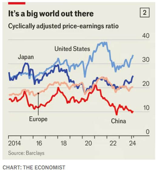 US stocks have continued to march higher this year, prompting skepticism among professional investors. Bank of America's monthly survey of fund managers reveals concerns among 40% of fund managers that AI stocks may be in a bubble, prompting doubts about future gains in the S&P 500 index. This apprehension raises questions about the availability of stocks offering good value in the current market environment. Value stocks, traditionally defined by low prices relative to underlying assets or earnings, have fallen out of favor compared to growth stocks in recent years. Despite brief periods of resurgence, value stocks have consistently underperformed, leading some to declare value investing obsolete. Critics argue that traditional valuation metrics overlook intangible assets and research spending crucial to modern firms, while investment tools quickly arbitrage potential returns. The cyclically adjusted price-to-earnings (CAPE) ratio, a key metric indicating overvaluation, is historically high for the S&P 500, raising concerns about future returns. Victor Haghani of Elm Partners suggests diversifying investments globally, as valuations are lower outside the U.S. He highlights disparities in market valuations despite similar earnings contributions from American and non-American companies, suggesting potential for repricing for international stocks. Hugh Gimber of J.P. Morgan Asset Management challenges the notion that lower valuations of European firms reflect sectoral differences, noting persistent discounts compared to American counterparts across sectors. This suggests potential undervaluation rather than lack of dynamism. Similarly, emerging markets offer value opportunities, benefiting from global trends with more reasonable valuations than in the U.S. Examples such as Mexico, Vietnam, South Korea, Taiwan, and Japan illustrate regions with undervalued assets potentially poised for growth. Despite the perceived natural superiority of American markets, the March Bank of America survey showed increased rotation into European and emerging-market stocks suggests a shifting investor sentiment toward undervalued assets globally.