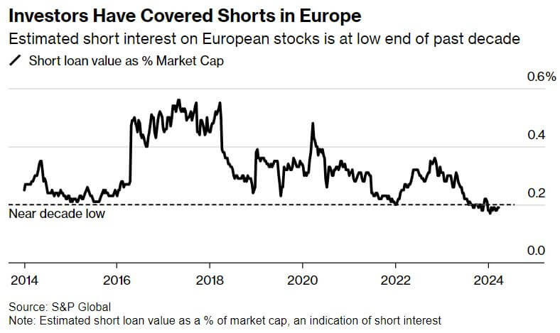 Investors are increasingly turning their attention towards European equities, anticipating a shift in the global equity rally from the US to Europe. Hedge funds, in particular, are exhibiting the highest exposure ever to European stocks relative to a global benchmark, while mutual funds are also significantly increasing allocations to the region. This trend is partly fueled by concerns about the US market's valuation resembling that of the dot-com bubble era, prompting investors to seek alternatives. Euro area shares have recently outperformed their US counterparts, with a 4% rise in March, and investors foresee further gains driven by an anticipated rebound in economic growth stimulating corporate profits. The current reliance of the S&P 500 Index on a select group of expensive tech stocks heightens the appeal of Europe's more diverse market composition. The Stoxx 600 Index, despite its recent gains, still appears attractively valued with a forward 12-month price-to-earnings ratio only slightly above its long-term average. Europe's heavier weighting in cyclical sectors positions it favorably as economies like Germany and the UK show signs of avoiding prolonged recession, coupled with anticipated global growth. Moreover, declining short positions on European stocks suggest improving sentiment towards the region, with short interest at its lowest level in at least a decade. Looking ahead, both the US and Europe are expected to witness robust earnings growth, with analysts projecting an 8.3% increase for S&P 500 firms and a 4% growth for Stoxx 600 earnings in 2024. Despite the optimism for the US market, there is recognition of the potential for Europe to catch up, offering intriguing investment opportunities for those seeking diversification and relative value.