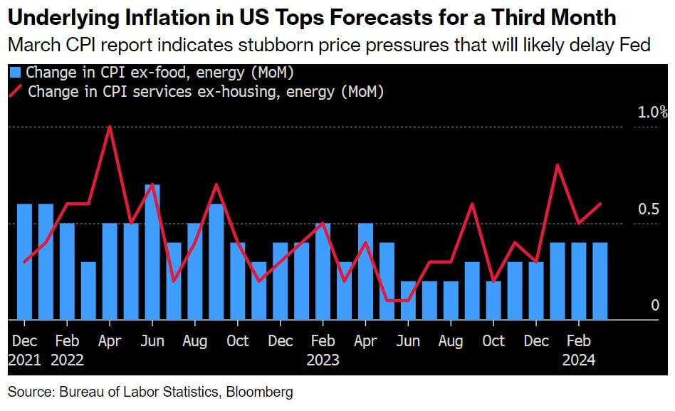 The Consumer Price Index (CPI), a pivotal metric gauging the cost of goods and services across the economy, surged by 3.5% in March compared to the previous year, slightly surpassing economists' projections and marking an escalation from February's 3.2%. Core prices, excluding volatile food and energy sectors, increased more than expected on both monthly and yearly scales, holding steady at 3.8% year on year. Consequently, financial markets reacted with a downturn in stocks and yields on U.S. government bonds rose, reflecting anticipation that the data might delay or mitigate future interest rate reductions. Futures contracts linked to the federal funds rate revealed a consensus among traders projecting rates to conclude the year around 5%, implying a possibility of merely one or two quarter-point cuts for the year, a stark contrast to earlier expectations of six or seven rate reductions. Although previous inflation readings in January and February were dismissed by Fed officials as potentially influenced by seasonal factors, the consecutive third month of above-expectations inflation data undermines such explanations. Consequently, the Fed may hold rates at their current level, the highest in 23 years, until clearer economic vulnerabilities emerge. Analysts highlighted concerning details within the report, particularly noting the unexpected rise in the overall core index despite declines in certain goods prices. Furthermore, persistent increases in shelter costs contradicted predictions of a slowdown, contributing to ongoing inflationary pressures.