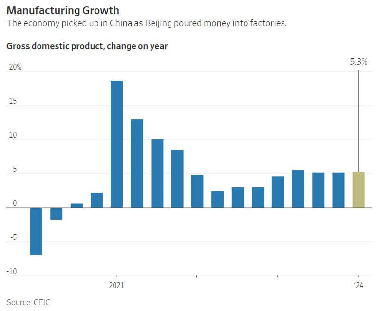 The first quarter of 2024 witnessed a notable acceleration in China's economy, attributed largely to Beijing's concerted effort to stimulate growth by injecting funds into manufacturing sectors, yielding discernible results. The National Bureau of Statistics of China reported a 5.3% year-over-year growth rate for the economy during this period, surpassing the 5.2% growth registered in the preceding quarter. This upturn was propelled by an uptick in industrial production and increased investment in manufacturing facilities, marking a strategic shift to bolster these sectors amidst sluggish domestic consumption and persistent challenges in the real estate market. However, concerns persist regarding the sustainability and inclusivity of this recovery. Notably, there is apprehension regarding the concentration of growth in manufacturing, potentially exacerbating trade tensions with Western nations and other emerging economies. Critics argue that the emphasis on manufacturing and exports may lead to a disproportionate reliance on external demand and could neglect the needs of Chinese households. The decline in property investment and tepid retail sales growth underscore lingering weaknesses in consumer sentiment, compounded by anxieties over employment stability. Despite the positive momentum in industrial production, there are signs of strain, such as diminishing demand relative to supply and declining industrial capacity utilization rates. This underscores the challenges of sustaining growth without addressing underlying demand-side constraints. While Beijing has implemented measures to stimulate household spending, including interest rate cuts and incentive programs, economists advocate for more comprehensive support to mitigate deflationary pressures and rebalance the economy towards consumption-driven growth.