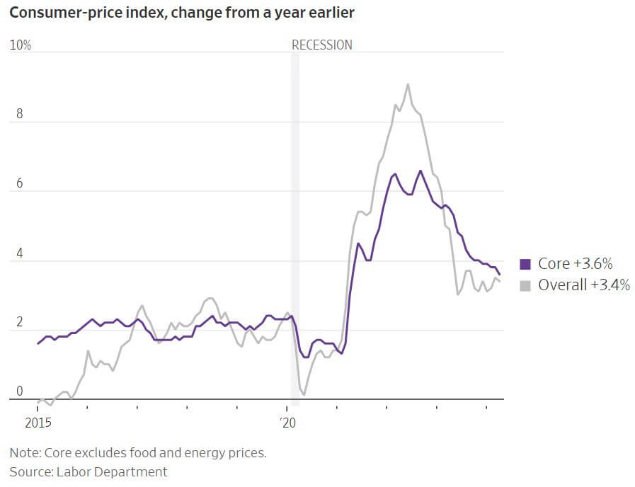 In April, U.S. inflation showed a slight decrease for the first time in six months, providing some respite to investors and the Federal Reserve amidst ongoing price pressures earlier in the year. The consumer-price index (CPI) rose 3.4% annually, with core prices (excluding food and energy) increasing 3.6%, the smallest rise since April 2021. The core CPI increased 0.3% month-over-month. Economists view the core measure as a more accurate indicator of underlying inflation trends. Key contributors to the CPI increase included shelter and gasoline, which accounted for over 70% of the rise. Service-related costs, such as car insurance and medical care, also contributed significantly, with apparel prices experiencing their largest jump since June 2020. Shelter prices, particularly owners’ equivalent rent, continued to rise, highlighting robust housing costs as a persistent driver of inflation. The cooling of core goods prices, excluding food and energy, provided some relief, driven by a slight decline in motor vehicle prices. The data, which came in line with forecasts, alleviated concerns about entrenched inflation following three months of higher-than-expected readings. This development offers a glimmer of hope for Federal Reserve officials considering rate cuts later this year. Market reactions were positive on Wednesday, with Treasury yields falling, the S&P 500 opening higher, and the dollar weakening. Despite the deceleration in core inflation, the broader economic landscape remains complex. A recent report showed producer prices rose more than expected in April, though key categories affecting the personal consumption expenditures (PCE) price index, which the Fed closely monitors, were more subdued. A separate report revealed real earnings on an annual basis rose at the slowest pace in nearly a year, showing continuing cooling in the labor market. Another report indicated retail sales stagnated in April, suggesting high borrowing costs and increasing debt are leading consumers to be more cautious. Fed Chair Jerome Powell emphasized the need for patience, indicating that restrictive monetary policy must be given time to impact the economy. Some policymakers remain skeptical about cutting rates this year, though traders have increased the likelihood of a September rate cut to about 60%.
