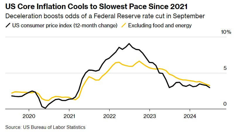 In June, U.S. inflation notably decreased, continuing a recent trend that could prompt the Federal Reserve to cut interest rates. The consumer-price index, which tracks overall economic costs, fell slightly from May, bringing the year-over-year inflation rate down to 3%, the lowest since June 2023. Core prices, excluding volatile food and energy items and better reflecting underlying inflation, increased by just 0.1% from May—the smallest rise since January 2021. The annual core inflation rate also dropped to 3.3%, the lowest since 2021. This broad cooling of prices in the second quarter surpassed economists' expectations, contrasting with unexpectedly brisk inflation in the first quarter. Continued mild inflation could support a potential interest-rate cut in September, especially if the labor market shows signs of cooling, which could reduce ongoing inflation or signal economic weakness. Investors currently do not expect a rate cut at the Fed's next meeting on July 30-31, as officials have not publicly rallied consensus for such a move. Instead, the focus will be on whether the groundwork for a September cut is laid. Thursday’s inflation report and two additional readings on June prices are critical, as they are the last data available before the July meeting. The report was reassuring for policymakers, showing a slowdown in housing costs after a significant post-pandemic increase. This aligns with expectations, as rents for new housing units have been cooling for 1.5 years, confirming that official inflation measures are now capturing these developments. Recent economic data indicate a cooling economy, with household consumption, construction spending, and service sector activity all below expectations. This has lowered estimates for economic growth in the second quarter. Despite this, employers have added over 200,000 jobs monthly on average this year, though the unemployment rate rose to 4.1% in June from 3.7% in December, suggesting a growing workforce and easing labor demand. Federal Reserve Chair Jerome Powell recently indicated that further labor market cooling might be undesirable, noting that the labor market is not currently a source of broad inflationary pressures. Many economists remain cautiously optimistic about inflation returning to the Fed's 2% target, despite a potentially slow and uneven path.