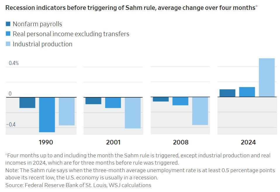 The unemployment rate is rising, stock markets are declining, and bond yields are falling below short-term interest rates, which are often indicative of a potential recession. However, a deeper analysis suggests that the U.S. is not currently in a recession, highlighting the importance of timely intervention from the Fed to prevent a downturn. Two significant events have fueled recession concerns: a stock market selloff triggered by the Bank of Japan's decision to tighten monetary policy, and a rise in the U.S. unemployment rate to 4.3% in July from 4.1% in June. The increase in unemployment aligns with a rule of thumb by economist Claudia Sahm, which historically correlates with recessions but is not a definitive indicator. More accurate measures, such as payroll employment, industrial production, and real incomes, show growth, suggesting the U.S. has not yet entered a recession. While stock market declines precede most recessions, not all stock slumps lead to recessions. Falling stock prices can directly impact spending and employment, potentially triggering a negative feedback loop. The Fed can mitigate this by cutting interest rates to boost demand and investment, though it remains cautious due to inflation concerns.