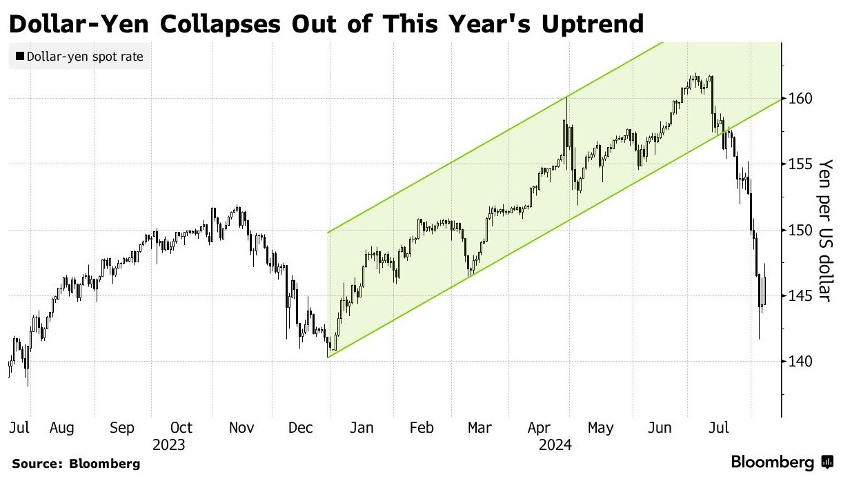 Global stock markets have been volatile amid American recession fears, with Japan experiencing the most dramatic fluctuations. On August 5th, the Topix index plunged 12%, the worst since 1987, as the yen strengthened from a 37-year low. The following day, stocks rebounded by 9% as investors bought undervalued shares. Monetary policy changes are driving these market swings. Over 18 months, the yen weakened as the U.S. Federal Reserve raised interest rates while Japan's central bank did not, encouraging a "carry trade" where investors borrowed cheaply in yen for higher returns in dollars or euros. This weakened yen boosted Japanese firms' foreign earnings and attracted foreign investment, with ¥9 trillion ($60 billion) in stocks purchased in 2023 and early 2024. The situation shifted when the Bank of Japan raised its rate from 0.1% to 0.25% on July 31st, while the Fed was expected to cut rates soon. This expectation grew after a disappointing U.S. jobs report on August 2nd. Speculators heavily invested in short yen trades had to quickly reverse their positions, driving up the yen and causing a stock market slump, particularly for exporters. Leveraged margin bets on Japanese stocks, which were at their highest since 2006, were rapidly unwound. On August 6th, investors reentered the market, believing the sell-off was driven by debt-laden forced selling. Stocks like Tokyo Electron and Japanese banks saw significant swings. Analysts do not foresee deep distress for Japanese firms or financial instability. However, Japan's role as a major global creditor means its market changes can impact foreign markets, especially if Japanese investors need to sell foreign assets to cover domestic liabilities. The extent of Tokyo's market turmoil remains uncertain, but choppy conditions are expected as speculative bets unwind. JPMorgan Chase reports that three-quarters of the global carry trade has already been unwound following the recent market selloff. This downturn has wiped out gains made year to date for the trading strategy. Returns on carry trade baskets, including those in the Group-of-10 and emerging markets, have declined by about 10% since May, significantly reducing profits accumulated since late 2022.