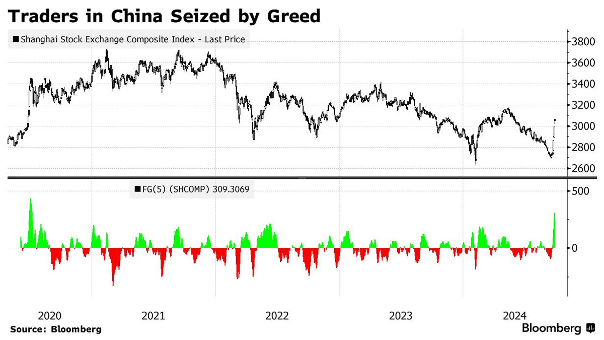 These stimulus measures led to a surge in market activity, overwhelming the Shanghai Stock Exchange. Early Friday, trading volume reached 710 billion yuan ($101 billion) within the first hour, causing order processing delays and system glitches. Despite these issues, the overall sentiment remains positive as investors rush to capitalize on the rapid market gains following China's boldest policy actions in decades, which led to a 15% rise in the onshore benchmark this week. This week’s trading frenzy, with turnover approaching 1 trillion yuan in the morning session alone, is the highest recorded before a national holiday, driven by a fear of missing out on the rally.