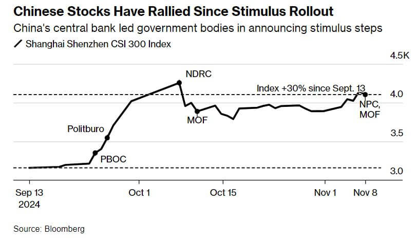 China has introduced a 10 trillion yuan ($1.4 trillion) program to help refinance local government debt, aimed at easing financial strain without triggering major new stimulus. The plan, detailed by officials in Beijing, allows local governments to shift "hidden" debt onto public balance sheets, with funds available through 2028. This cautious approach leaves space for a stronger response if trade tensions with the U.S. escalate after Donald Trump takes office. While not introducing direct economic stimulus, Finance Minister Lan Fo’an signaled a “more forceful” fiscal approach for 2024, hinting at further action depending on Trump’s policies. As the U.S. president-elect considers high tariffs on Chinese goods, China’s leaders have avoided immediate moves, preferring a wait-and-see stance. Recent stimulus steps have boosted China’s stock market by 30% since September, helping stabilize growth without adding substantial new debt. However, investors, anticipating more spending on domestic demand, expressed disappointment when the package’s scope became clear. China's local debt burden has grown, partly due to reduced revenue from land sales amid a property slump. The program aims to address this by raising local governments’ debt ceiling, allowing an extra 6 trillion yuan in bonds over three years to restructure existing debt. An additional 4 trillion yuan in bonds will be available by 2028. Economists see the debt swap as essential for financial stability, though it may only indirectly support economic growth. Some analysts argue more direct fiscal measures are needed to stimulate consumption and ensure robust growth. Investors await further developments, expecting clearer policy directions at the Politburo’s December meeting and the annual Central Economic Work Conference.