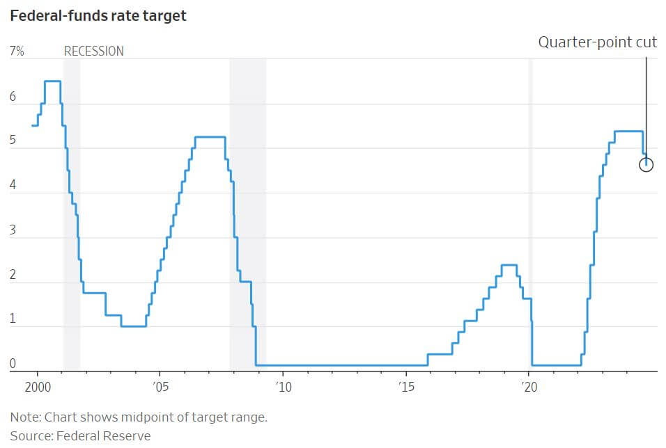 The Federal Reserve approved a quarter-point interest rate cut last week, bringing the federal funds rate to a range between 4.5% and 4.75%. This move, unanimously backed by all 12 Fed officials, aims to protect the labor market from the impact of high rates set in the past 2½ years while inflation moderates. Fed Chair Jerome Powell expressed confidence that, with adjusted policies, inflation can be controlled without destabilizing economic growth. Following Donald Trump’s recent re-election, economists are split on whether potential GOP-led policy shifts could spur or slow economic growth. On Wall Street, this shift has fueled speculation about the Fed’s future rate cut plans. Though Fed officials had projected a gradual rate reduction, rising bond yields and concerns over higher deficits have led to an unusual situation where borrowing costs—such as mortgage rates—have increased even as the Fed cuts rates. The average 30-year mortgage rate, for example, rose from 6.1% to 6.8% since mid-September. The Fed’s primary goal is to achieve a "neutral" rate that neither accelerates nor dampens growth, though officials are uncertain where this level lies. Before the 2008 financial crisis, a neutral rate was seen near 4%, but recent estimates suggest it may be closer to 2%. With inflation at 2.1% and core inflation at 2.7% in September, officials remain cautious about further cuts. The next potential cut is anticipated in December, but mixed economic signals—such as steady consumer spending despite a cooling labor market—are creating a complex decision-making environment for the Fed.